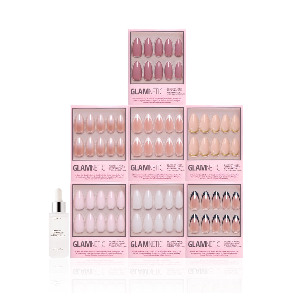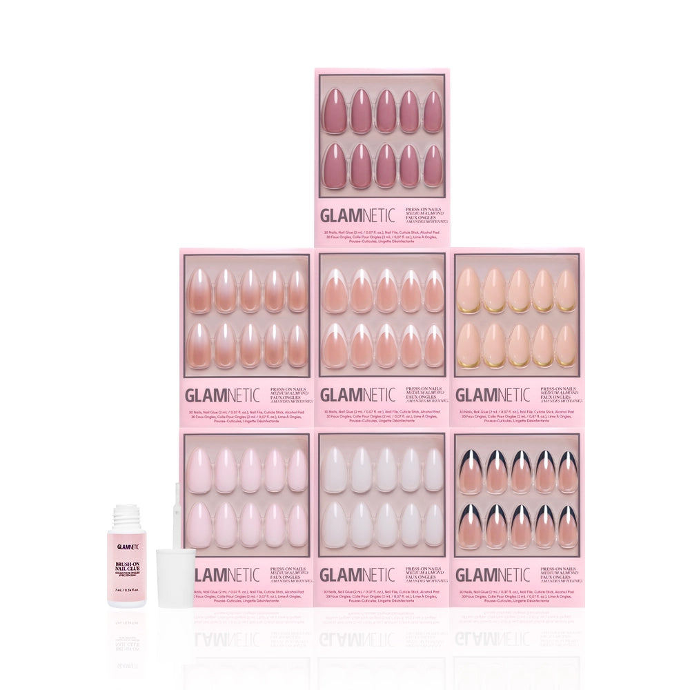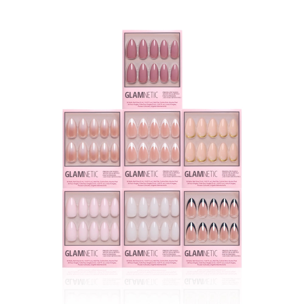 Introducing the Medium Almond Glam Icons bundle — 7 medium almond press-on sets that reimagine our most-loved timeless designs in an elegant. elongating silhouette. From French tips to soft shades and milky manis. every style feels sleeker and more refined in this graceful shape. Durable. long-lasting. and effortlessly salon-quality. these medium almond manis don’t shy away from its icon status.